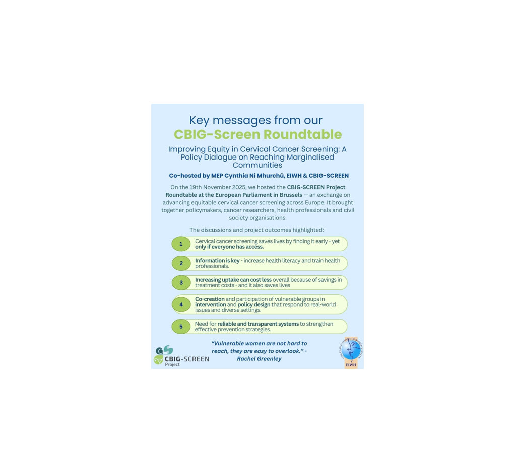 On November 19th at the European Parliament, we brought together policymakers, researchers, clinicians and civil society to discuss equity in cervical cancer screening across Europe