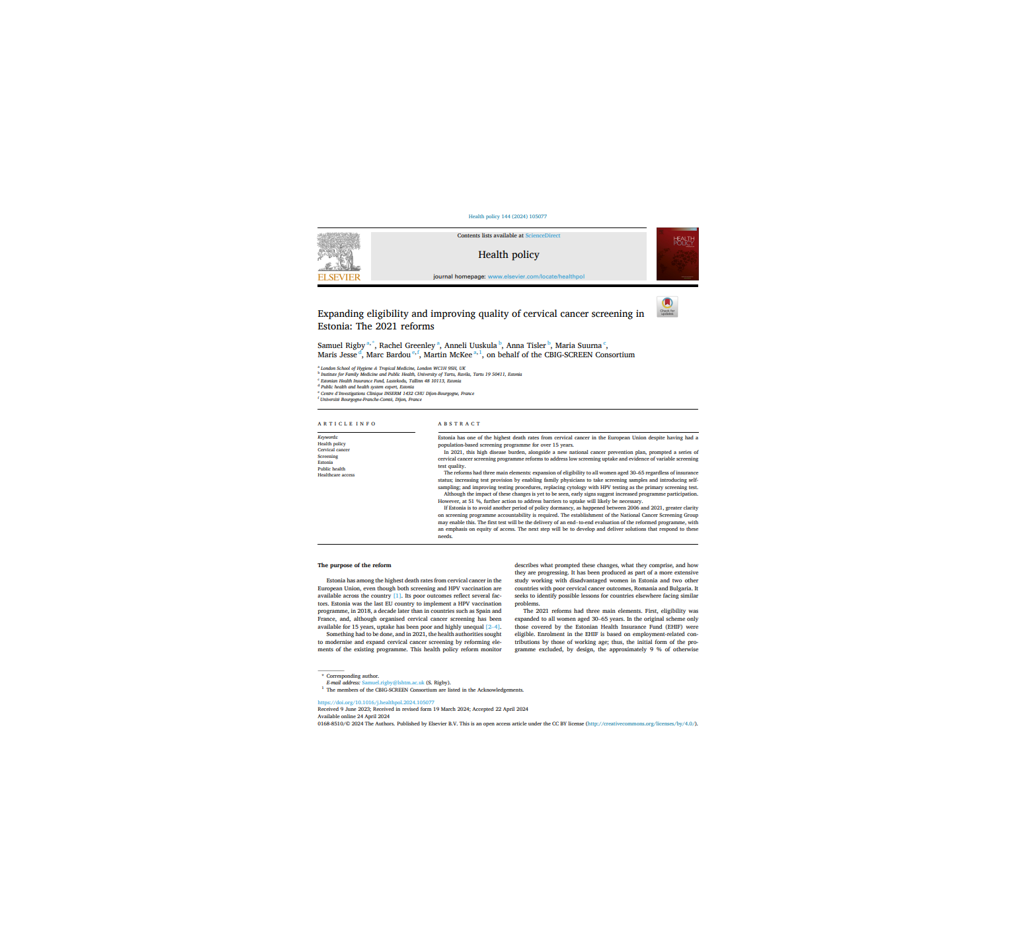 Expanding eligibility and improving quality of cervical cancer screening in Estonia: The 2021 reforms